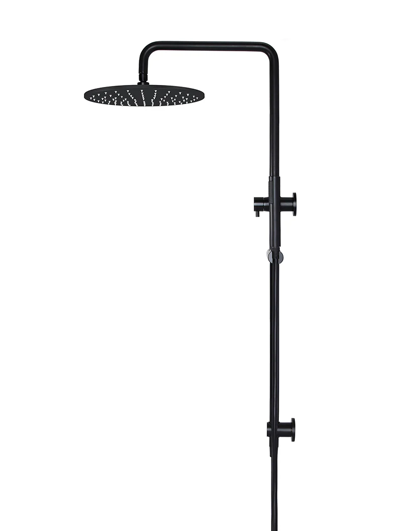 Round Combination Shower Rail, 300mm Rose, Single Function Hand Shower - Matte Black